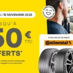 Du 6 octobre au 15 novembre 2025, profitez de l’offre Continental jusqu’à 150€ offerts* en bon d’achat ou 120€ remboursés.