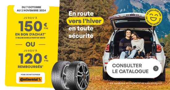 Du 12 novembre au 7 décembre 2024, jusqu’à 100€ en bon d’achat* à valoir dans votre point de vente Eurotyre […]