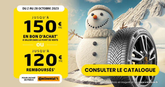 Pneus Continental : Profitez de notre promo jusqu’à 150€ remboursés Du 12 Juin au 29 Juillet 2023, jusqu’à 150€ remboursés* pour l’achat […]