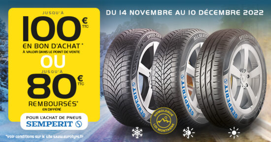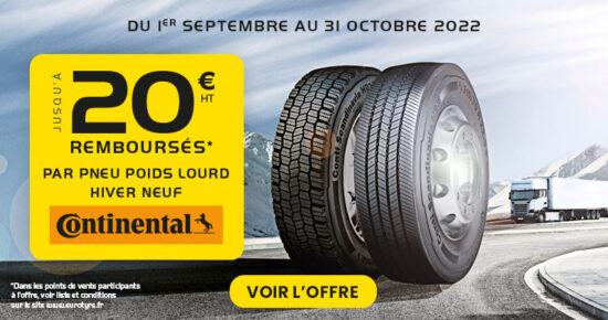 Du 1er septembre au 31 octobre 2022 pour l’achat de pneumatiques Poids Lourd neufs Hiver Continental, bénéficiez d’un remboursement jusqu’à […]